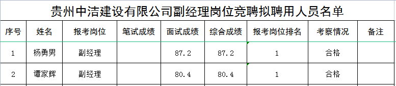 附件:貴州中潔建設有限公司副經理崗位競聘擬聘用人員名單