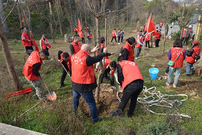 活動現(xiàn)場紅旗飄飄,大家的熱情空前高漲,一片熱火朝天的植樹景象映入眼簾。團(tuán)委副書記楊紹燦帶領(lǐng)集團(tuán)公司青年團(tuán)員分頭行動、明確分工。搬樹入坑、栽植、覆土、澆水,每一步步驟都有條不紊的進(jìn)行,在大家的共同努力下,本次的植樹活動取得了圓滿成功。